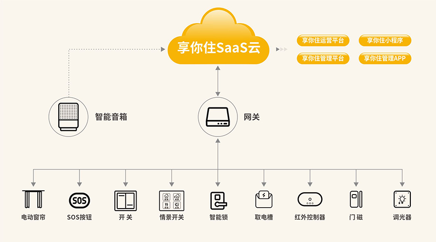 在酒店产业智能化发展的大方向下,「享你住」智慧酒店解决方案赋能企业,通过平台、技术、生态等多方面的支持和深度合作,按需定制高性价比的全套智能化解决方案,增强客户的综合竞争能力及行业影响力。同时,该平台还能促进行业数字化转型、提升智能化产品品质、提高酒店运营效率,助力服务商、品牌商、酒店管理者在智慧化转型的道路上脱颖而出!